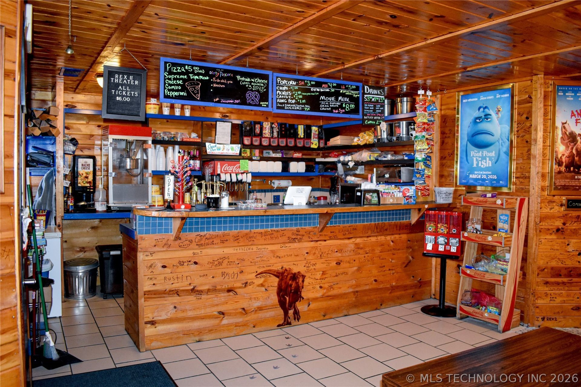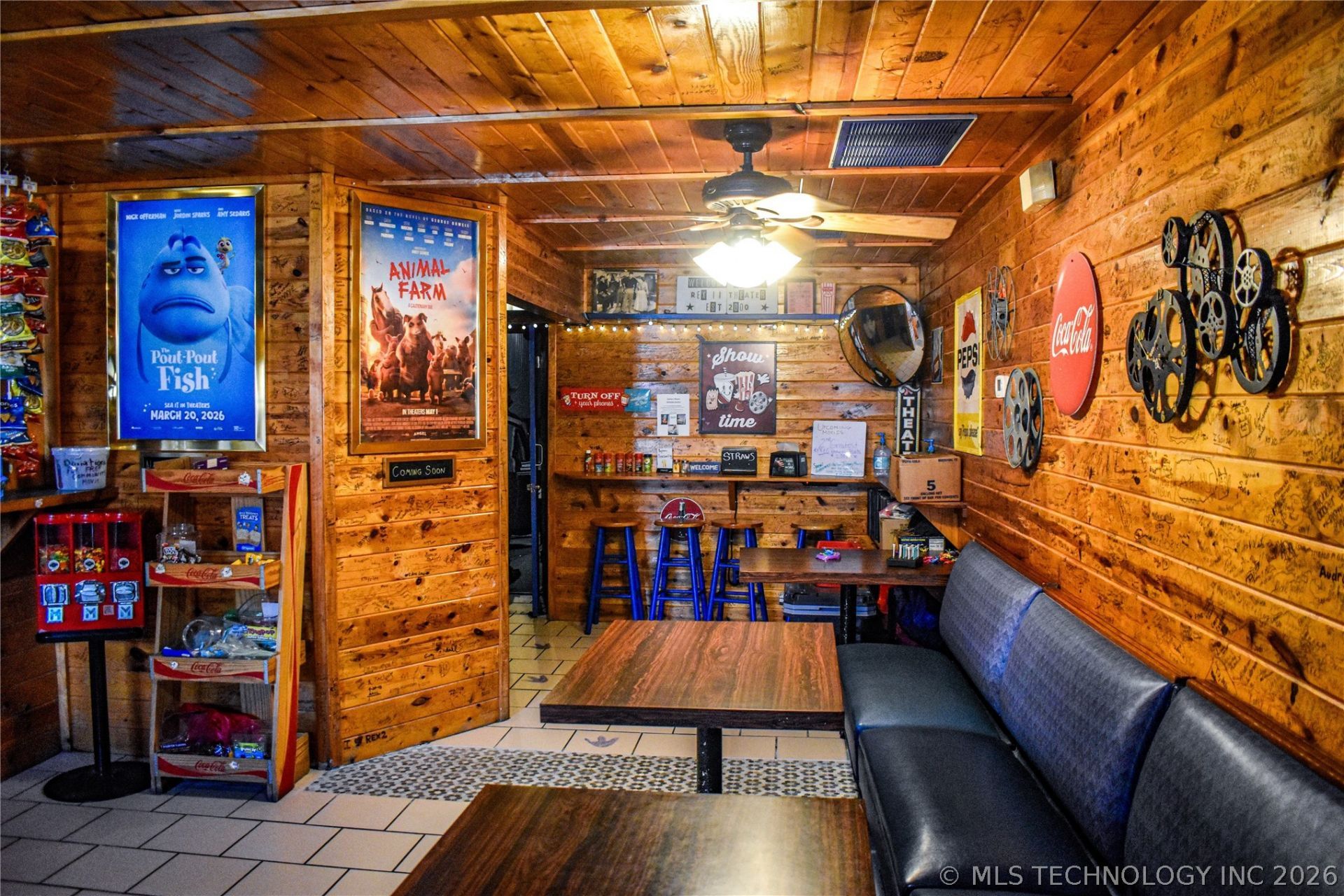 Lights - Camera - Action! Rare opportunity to own a fully operational and thriving cinema in the heart of downtown Caddo, Oklahoma. This turnkey business includes a theater room consisting of 106 seats, with a handful of additional new seats that haven't been installed. A fully equipped concession area with all the amenities needed to provide customers with top notch popcorn, soda and snacks for an enjoyable movie experience. The character of the building is unmatched, and as you step into the building, the rustic charm will give you a sense of nostalgia and excitement. You will find many different storage areas and closets to keep the business tidy and organized. Upstairs, discover a roomy loft, featuring office/projector room and a cozy living area with kitchenette, bathroom, sleeping quarters and even a stackable washer and dryer. Owner is graciously willing to answer questions, let you observe how business is currently being run, and provide new owners with contacts and information that you may need for continuing operations and aid in a smooth transition so you don't feel like you are starting at square one with your new venture. Let your imagination take hold as you think about ways to maximize your investment and become the hub of community events, whether you decide to add a coffee shop, ice cream parlor, performance and art theatre, live music venue or whatever you decide!